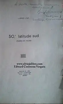 - 50° Latitude sud, imprenta y litografía La Ilustració, Santiago, 1930.