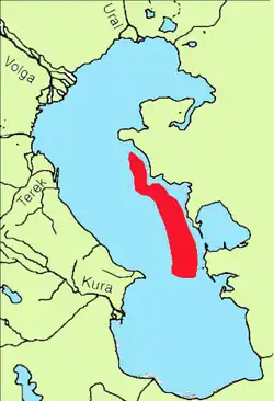 Se encuentra en el mar Caspio.