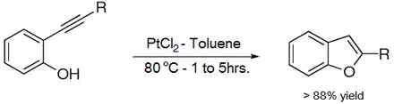 - Fürstner, Alois & Davies, Paul (2005). «Heterocycles by PtCl2-Catalyzed Intramolecular Carboalkoxylation or Carboamination of Alkynes». Journal of the American Chemical Society 127 (43): 15024-15025. doi:10.1021/ja055659p. Consultado el 11 de febrero de 2014.
