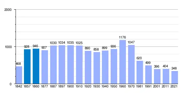 | Gráfica de evolución demográfica de Berlanga del Bierzo[12] entre 1842 y 2021 |