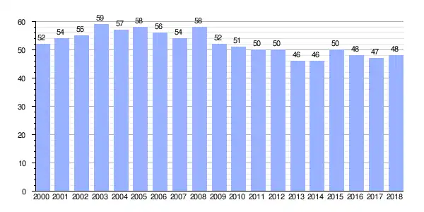 | Gráfica de evolución demográfica de Bermo entre 2000 y 2018 |