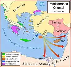 En 1450, el rey Alfonso V el Magnánimo (1396–1458) de Aragón, que se caracterizó por realizar una agresiva política naval mediante la concesión de abundantes patentes de corso, encomendó a Vilamarí el mando de una expedición al Mediterráneo oriental, aprovechando la caótica situación reinante en la zona ante el imparable avance otomano hacia Constantinopla, para hostigar a los navíos de las potencias marítimas enemigas. Debía además socorrer a los Caballeros Hospitalarios de San Juan de Jerusalén asediados por los turcos en la isla de Rodas.