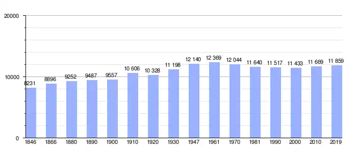 | Gráfica de evolución demográfica de Bernissart entre 1846 y 2019 |