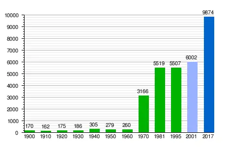 Gráfica de evolución demográfica de Berriozar entre 1900 y 2017