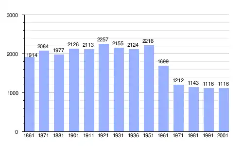| Gráfica de evolución demográfica de Bertonico entre 1861 y 2001 |