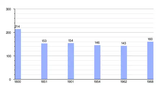 Los datos demográficos contemplados en este gráfico de la comuna de Berville[4] se han cogido de 1800 a 1968 de la página francesa EHESS/Cassini.