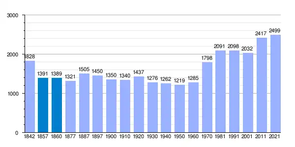 | Gráfica de evolución demográfica de Besalú[2] entre 1842 y 2021 |