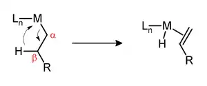 La beta eliminación es una reacción mediante la cual un complejo organometálico se descompone para dar un complejo hidruro metálico y un alqueno.[1]