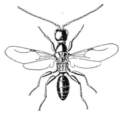 Tienen un tamaño entre 2-5 mm, rara vez más de 10 mm. El aspecto general es de color negro o marrón oscuro. Las hembras sin alas se parecen superficialmente a las hormigas.