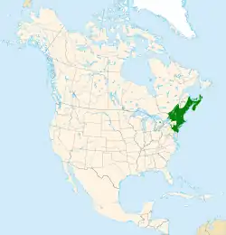Es un árbol caducifolio nativo de América del Norte. Se encuentra desde el sureste de Ontario, al este de Nueva Escocia, y el sur de Pensilvania y Nueva Jersey. También cuenta con poblaciones disjuntas en Indiana, Virginia y Carolina del Norte.