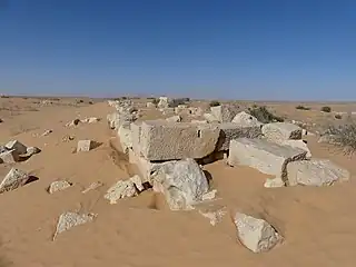 El fuerte, construido sobre una pequeña colina con buena visibilidad, pertenece con Tisavar a las primeras fortificaciones[1] de esta sección del Limes Tripolitanus. Se encuentra en un recodo formado por la frontera romana, una línea que va de sureste a oeste, resultado de las consideraciones romanas de excluir del territorio las áreas desérticas hostiles y construir solo instalaciones militares en áreas semidesérticas. Tras esta sección fronteriza está el uadi de Hallouf.