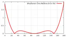 que asigna a Ariabhata. Presenta un error relativo de menos del 1,9% (la mayor desviación en ). Además da relaciones entre el seno y el coseno, así como entre el seno de un ángulo de , o al seno de un ángulo de . Partes del Maja-bhaskaríia fueron más tarde traducidas al árabe.