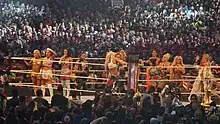 Belair (cuarta desde la izquierda) en WrestleMania 34, 2018.