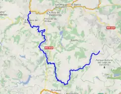 Su recorrido de 97 km transcurre por las provincias de Zamora, Orense y Lugo; la superficie de su cuenca hidrográfica comprende un total de 1.561 km².