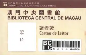 Tarjeta de usuario de la Biblioteca Central de Macao.