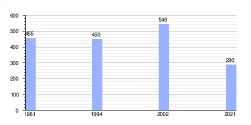 Hasta 2021 la población era de 290 habitantes,[2] con una densidad de población de 121,8 habitantes por kilómetro cuadrado.[2]