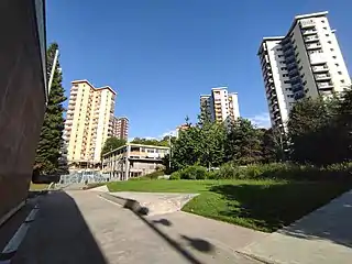 Originariamente denominado como "La paz" en conmemoración de los primeros 25 años de armisticio en España, fue inaugurado por Francisco Franco en la década de los años 60. El entonces máximo mandatario del Estado español se personó a los pies de lo que hoy es el número 27 del Paseo de Serapio Múgica, junto con diversas personalidades de la época, para conocer in situ la amplitud de uno de los pisos cuya construcción se acababa de realizar. En total se construyeron un total de 12 torres con 15 pisos en cada una de ellas. Estos edificios primarios son conocidos popularmente como "los doce apóstoles" y son claramente diferentes al resto de rascacielos que se construyeron más tarde en el entorno de la misma zona. Franco no mostró una especial satisfacción tras la visita al citado apartamento, dejando entender que era demasiado pequeño para sus próximos ocupantes; unas familias que por aquellas épocas acostumbraban a tener numerosos hijos. Astutamente, los encargados de aquella visita tuvieron a bien mostrarle uno de los pisos de las torres más amplias, mas lo que nunca supo el Caudillo es que la mitad de todas aquellas viviendas eran todavía más pequeñas.