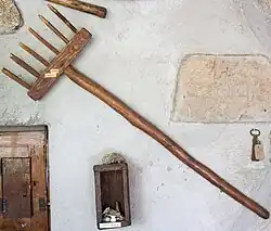 Bieldo de seis dientes en el Museo Etnológico de Puerto Seguro.