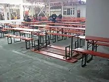 Además del mobiliario tradicional existen otras variantes, como, por ejemplo, las mesas redondas. Estas no son muy comunes y ocupan bancos o sillas normales (estas, muchas veces, con brazos).