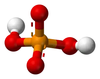![]() Modelo bola y palo de los aniones dihidrogenofosfatos | ||