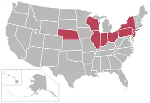 | Universidad Rutgers | Nuevo Brunswick, Nueva Jersey | Scarlet Knights | Pública | Hockey sobre hierba femenino Lacrosse femenino Lacrosse masculino |