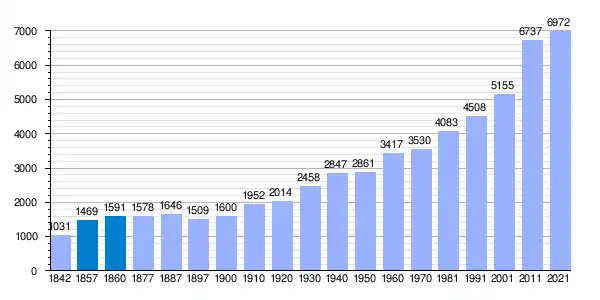 | Gráfica de evolución demográfica de Bigastro[3] entre 1842 y 2021 |