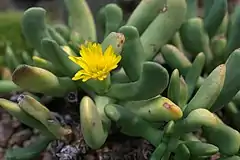 Es una pequeña planta suculenta que alcanza un tamaño de 4 cm de altura a una altitud de 800 a 1000 metros en Sudáfrica. Es extremadamente resistente a la sequía y crece profusamente. Se cubre de flores naranjas y amarillas la mayoría del año en climas moderados. No resiste las heladas.