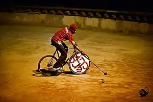 Puede utilizarse cualquier bicicleta convencional, muchos jugadores adaptan las suyas e inclusive existen marcos o cuadros y bicicletas diseñadas especialmente para el juego. Algunas características de diseño son poca distancia entre ejes, poca distancia entre rueda trasera y pedalier, ángulo más bien vertical en el tubo de frente, frenos en ambas ruedas con un solo comando, tapas de plástico en las ruedas para evitar que el taco o maza se trabe en los rayos o radios.