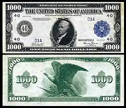 | $1.000 | Alexander Hamilton | Águila de cabeza blanca | ![]() |