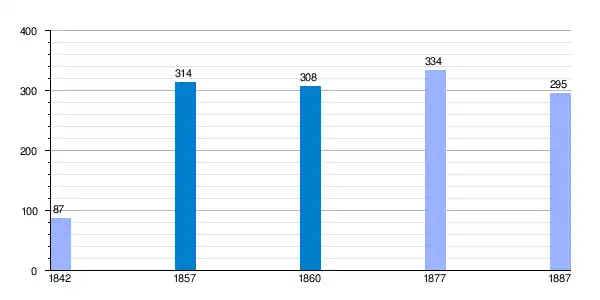 | Gráfica de evolución demográfica de Binué[1] entre 1842 y 1887 |