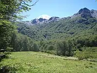 | Espinal | Bosques armados de espinas típicos de ambientes secos que «representa la herradura arbórea que ciñe al pastizal pampeano». | Algarrobos | Venado de las pampas, gato montés, el zorro gris y el ñandú. | ![]() |