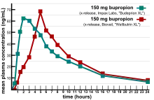 En 2007, dos proveedores de información al consumidor sobre productos y suplementos nutricionales, ConsumerLab.com y The People's Pharmacy, publicaron los resultados de las pruebas comparativas de diferentes marcas de bupropión.[7] The People's Pharmacy recibió múltiples informes sobre el aumento de los efectos secundarios y la disminución de la eficacia del bupropión genérico, lo que le llevó a pedirle a ConsumerLab.com que probara los productos en cuestión. Las pruebas mostraron que algunas versiones genéricas de Wellbutrin XL 300 mg no tuvieron el mismo rendimiento que la píldora de marca en las pruebas de laboratorio.[8] La FDA investigó estas quejas y concluyó que la versión genérica es equivalente a Wellbutrin XL con respecto a la biodisponibilidad del bupropión y su principal metabolito activo, el hidroxibupropión. La FDA también dijo que la variación coincidente del estado de ánimo natural es la explicación más probable para el aparente empeoramiento de la depresión después del cambio de Wellbutrin XL a Budeprion XL.[9] Después de varios años de negar los informes de los pacientes, en 2012 la FDA revirtió esta opinión y anunció que "Budeprion XL 300 mg no demuestra la equivalencia terapéutica con Wellbutrin XL 300 mg".[10] La FDA no probó la bioequivalencia de ninguna de las otras versiones genéricas de Wellbutrin XL 300 mg, pero solicitó que los cuatro fabricantes envíen datos sobre esta cuestión a la FDA antes de marzo de 2013. A partir de octubre de 2013, la FDA ha tomado decisiones sobre las formulaciones de algunos fabricantes que no son bioequivalentes.[11]