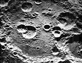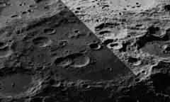 ![]() Mosaico de la imagen oblicua desde el Lunar Orbiter 5 (lado oeste) | ||