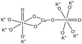 El bis[hexaoxoyodato(VII)]cuprato(III) de potasio es un complejo diamagnético con fórmula molecular K7Cu(IO6)2.