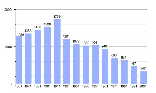 | Gráfica de evolución demográfica de Bisegna entre 1861 y 2001 |