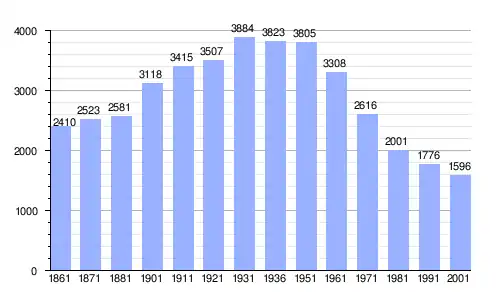 | Gráfica de evolución demográfica de Bivongi entre 1861 y 2001 |