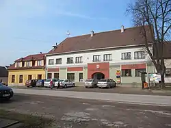 Se encuentra ubicada al suroeste de la región, cerca de la orilla del río Dyje —un afluente del río Morava que, a su vez, lo es del Danubio—, de la frontera con Austria y la región de Vysočina, y a poca distancia al suroeste de la ciudad de Brno.[1] La localidad es conocida por la segunda plaza triangular más grande en la República Checa.[2]
