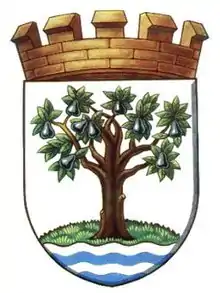 Según la tradición en Worcestershire que durante la visita de la reina Isabel I de Inglaterra a Worcester en 1575 vio un peral cargado de peras negras, que había sido trasladado de los jardines de las Damas Blancas y vuelto a plantar en su honor junto a la puerta por la que se encontraba la reina, para entrar a la ciudad. Al darse cuenta del árbol, se dice que Isabel ordenó a la ciudad que agregara tres peras a su escudo de armas.[5]