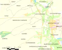Blacy es una población y comuna francesa, en la región de Champaña-Ardenas, departamento de Marne, en el distrito de Vitry-le-François y cantón de Vitry-le-François-Ouest.