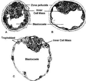 Durante el desarrollo temprano de los embriones de mamíferos, los blastómeros se diferencian en la etapa de blastocisto en dos linajes celulares diferentes: el trofoblasto, que dará lugar al tejido extraembrionario, y la masa celular interna, que forma el feto. En un embrión en desarrollo normal, estos dos linajes celulares sufren apoptosis, un proceso que ocurre como un mecanismo para eliminar células no deseadas o genéticamente defectuosas.[1]