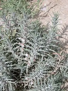 Es una planta de las estepas o desiertos muy cálidos. Después de la floración los frutos maduros permanecen en las axilas de las brácteas espinosas hasta que se producen las primeras fuertes lluvias.[1]