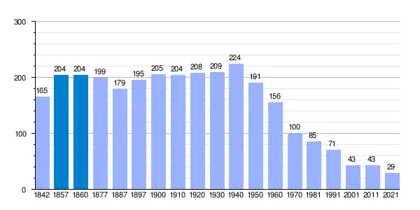 | Gráfica de evolución demográfica de Bliecos[5] entre 1842 y 2021 |