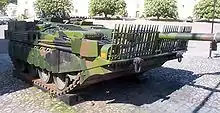 - Esta obra contiene una traducción derivada de «Slat armor» de Wikipedia en inglés, concretamente de esta versión, publicada por sus editores bajo la Licencia de documentación libre de GNU y la Licencia Creative Commons Atribución-CompartirIgual 4.0 Internacional.