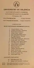 Papeleta del Bloc d'Estudiants Agermanats para las elecciones al Claustro de la Universidad de Valencia de 1990.