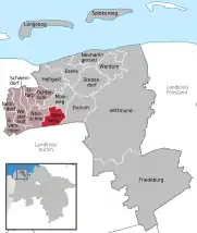 Se encuentra ubicado al norte del estado, a poca distancia a poca distancia de la costa del mar del Norte.