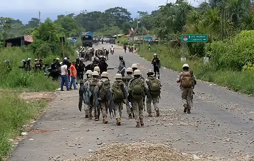 El Ejército del Perú y la Policía Nacional del Perú durante los enfrentamientos y levantamiento en Laberinto, 11 de febrero de 2023. | |||||