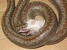Una boa rosada de Riverside, California, exhibida como una criatura dócil