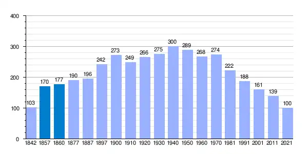 | Gráfica de evolución demográfica de Bobadilla[6] entre 1842 y 2021 |