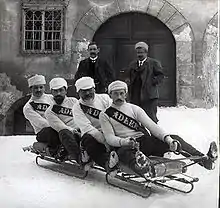 Se desarrolló después de que el hotelero Caspar Badrutt (1848-1904) convenciera a algunos clientes ingleses adinerados para que pasaran todo el invierno en su hotel de la ciudad balneario de St. Moritz, Suiza.]] Se sentía frustrado porque su hotel sólo estaba ocupado durante los meses de verano. Entreteniendo a sus huéspedes con comida, alcohol y actividades, estableció rápidamente el concepto de "estación invernal". Moritz de Badrutt se puso muy de moda en la Gran Bretaña victoriana. Sin embargo, con el aumento del número de personas, esto llevó a algunos huéspedes a buscar nuevas diversiones. A principios de la década de 1870, algunos ingleses aventureros empezaron a adaptar trineos de reparto para niños con fines recreativos.[1]