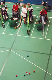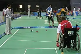 ![]() Partido de bochas individual BC2 en los Juegos Paralímpicos de Pekín 2008. | ||